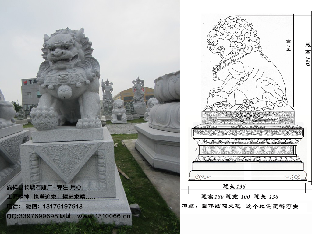要說石獅子價格,首先要從雕刻的石材入手,而且石獅子雕刻選擇的石材也比較多,比如常用到的山東青石、漢白玉、花崗巖、大理石等。選擇不同的雕刻石材,其石獅子的報價也不同,比如山東青石這種石材,它本身價格不貴,而且雕刻起來也比較簡單,不費力;但是花崗巖雕刻就不同了,這類石材質地堅硬,雕刻難度比較大,價格會稍微貴一些。這就更不用說漢白玉了,其本身這種石材就貴,雕刻出來的作品精美度和細膩感都要比別的石材好,價格就會貴一些,而且我們嘉祥長成石雕廠就是專業的石獅子制作廠。